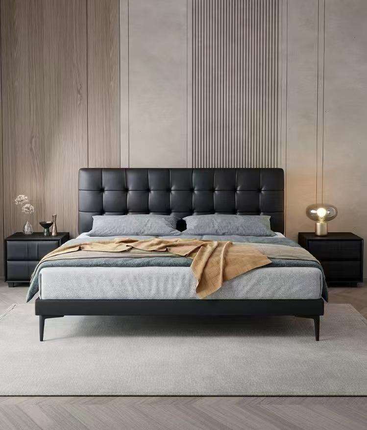 Italian Luxury 1.8m Double Bed Adjustable 1.5m Leather Headboard 2m Upholstered Wooden Frame Minimalist Home Up-Holstered Beds