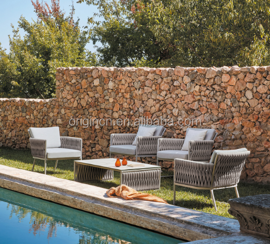 Italian Luxury Style Chair Outdoor Furniture Hotel Patio Sitting Rope Coffee Table Armchairs Set