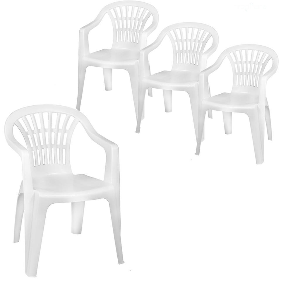 Italian-Made 4 White Stackable Plastic Garden Chairs with Armrests 56x54x80 cm Stackable Chair Set