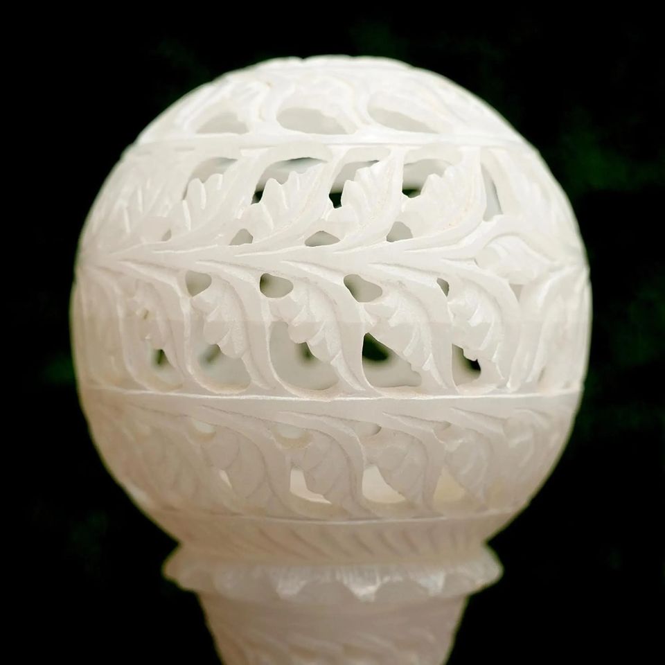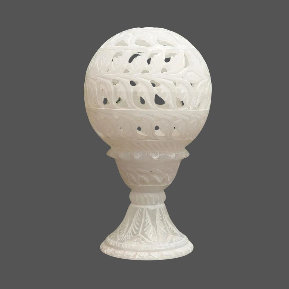 Hand carved Italian Marble Table Lamp and Tealight Holder with Stone Ball Shape