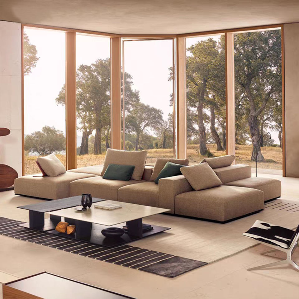 Italian Minimalist Damasco Square Modular Sectional Sofa Genuine Leather Upholstered Stainless Steel Legs for Villa Upscale