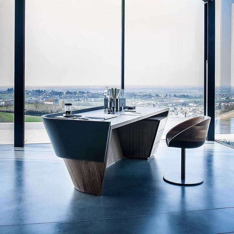 ML Italian Minimalist Design Study Room Furniture Wooden Computer Table Desk Luxury Curved Table for Apartment