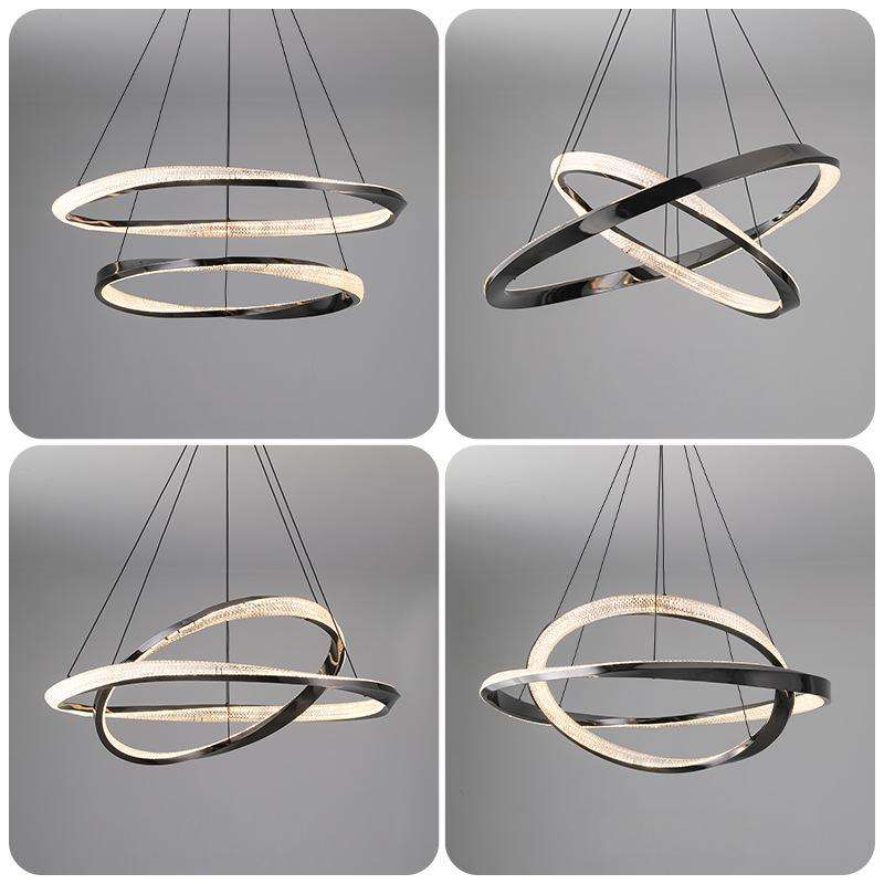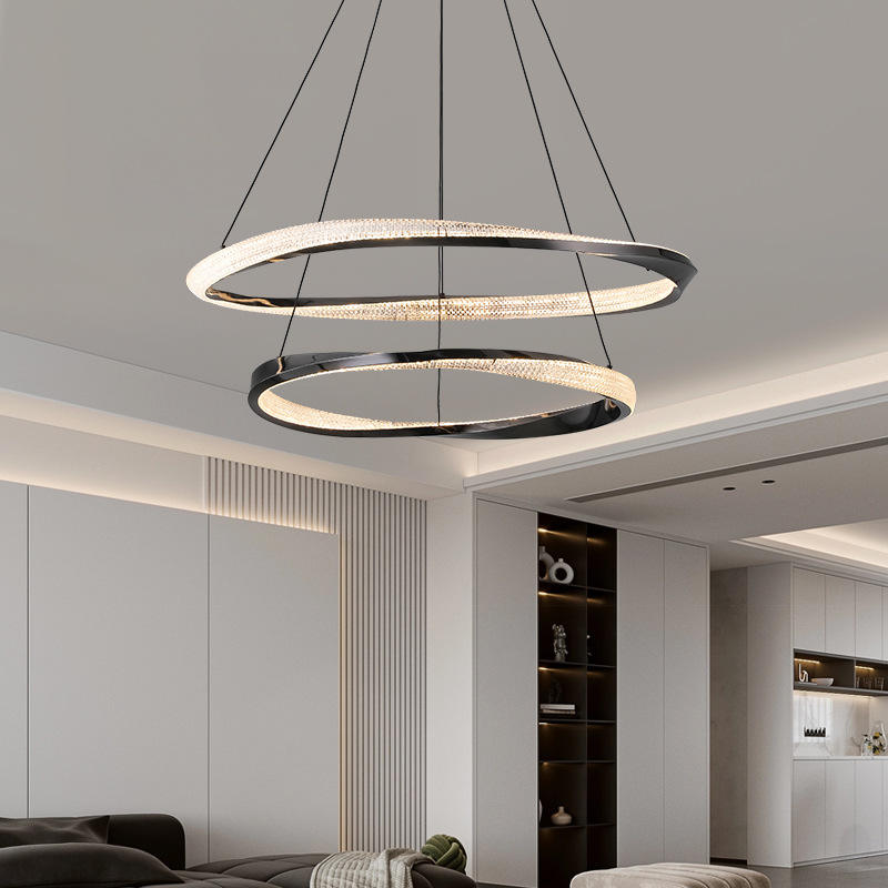Italian Minimalist Style Black Metal LED Pendant Lights Nordic Modern Chandeliers for Bedroom Living Room Dining Room Oval