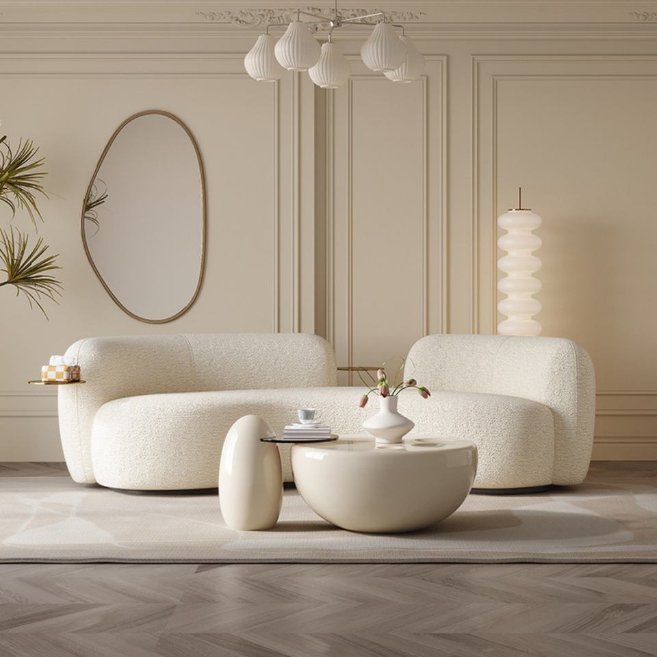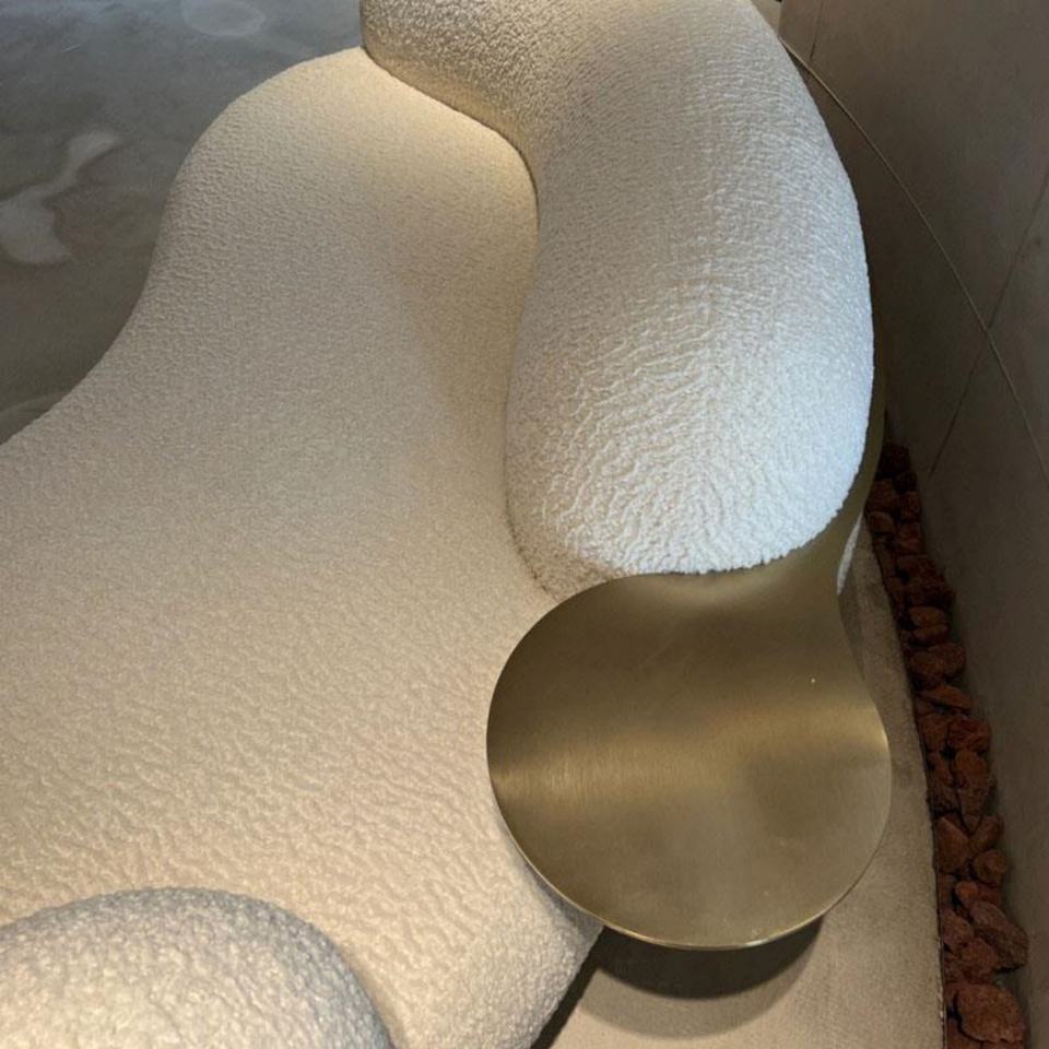Italian Modern Chesterfield Love Seat Luxury Solid Wood Frame White Fabric Table Sofa Curve Shape Livingroom Furniture