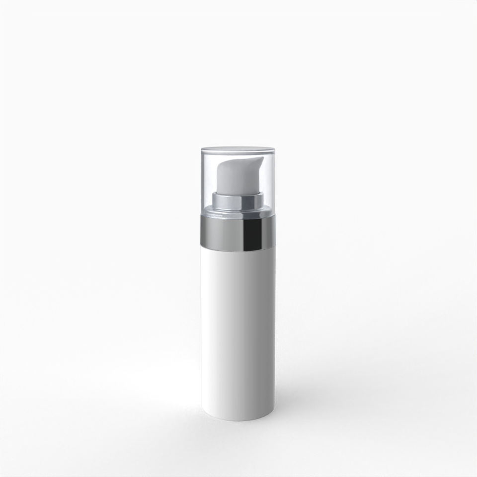 Italian Quality Airless Plastic Bottle Pamela 30 ML Glossy White Airless Dispenser Shiny Silver Metallic Container Packaging