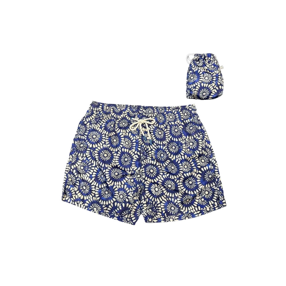 Italian Quality Men's Beach-Printed Board Shorts with Elastic Waist Quick-Drying Fabric Pockets-Comfortable Light Swim Trunks