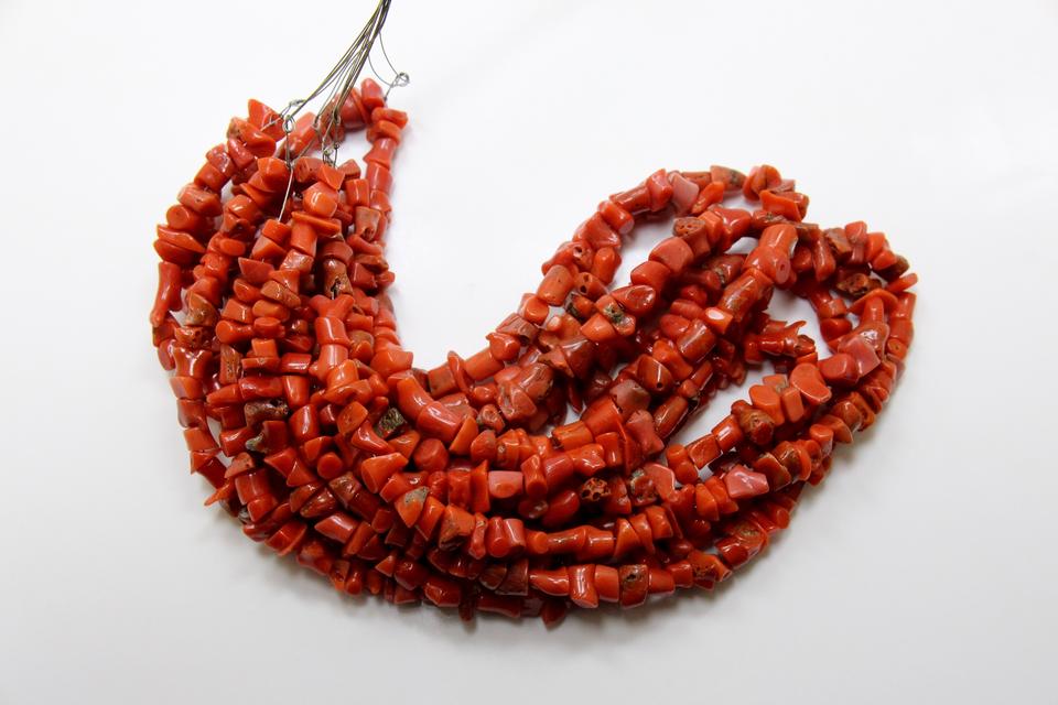 Italian Red Coral Natural Gemstones Smooth Uncut Chips Beads Free Size 14' Inch Length Mediterranean Italian Coral Stone Beads