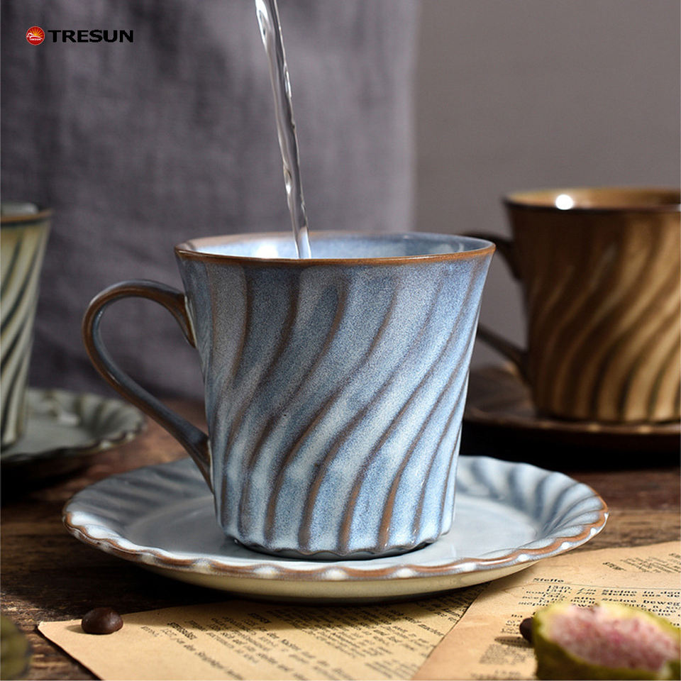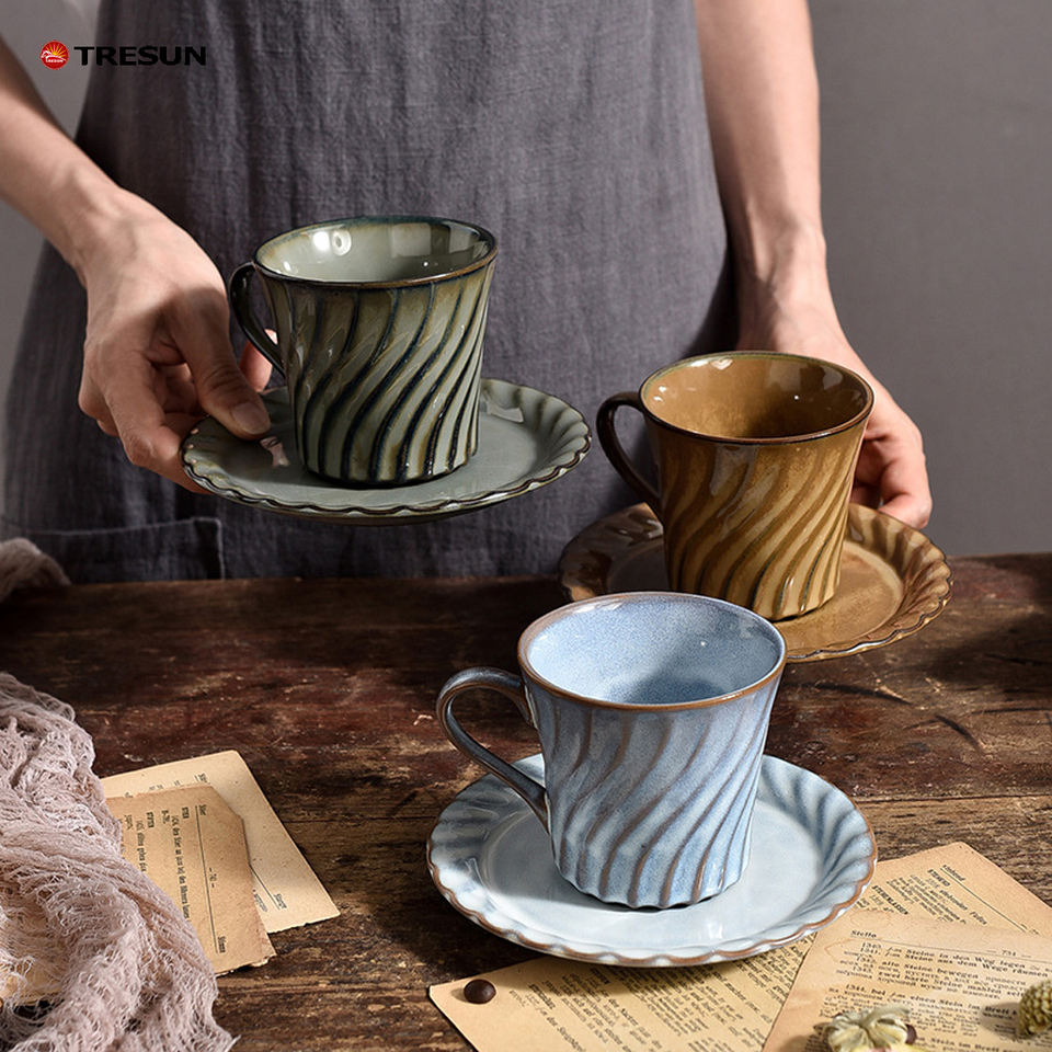 Italian Retro Nostalgic Style Ceramic Striped Mug Hand-Painted Stoneware Cup for Business Gifts for Afternoon Tea Milk