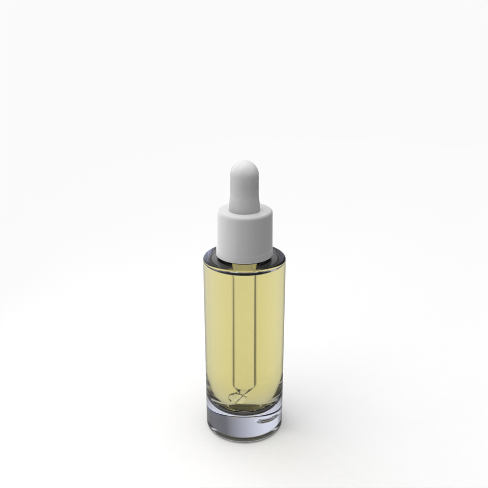 Italian Transparent Recycled Glass Bottle Laura 30 ML With Glossy White Minerbio Dropper PIR White Nitrilic Rubber Pipette