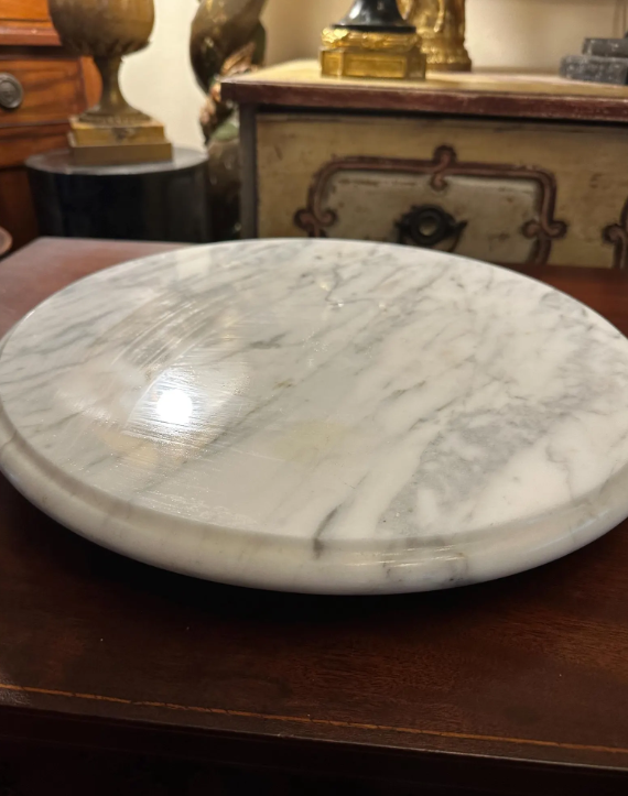 Italian Vintage Carrara Marble Serving Tray Wood Lazy Susan Turntable for Dining Countertop Rotating Charcuterie Display Spice