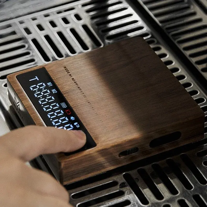Italian Coffee Bean Walnut Metal Electronic Scale Household Hand-Brewed Coffee Precision Timing Scale Easy-Clean Non-Stick