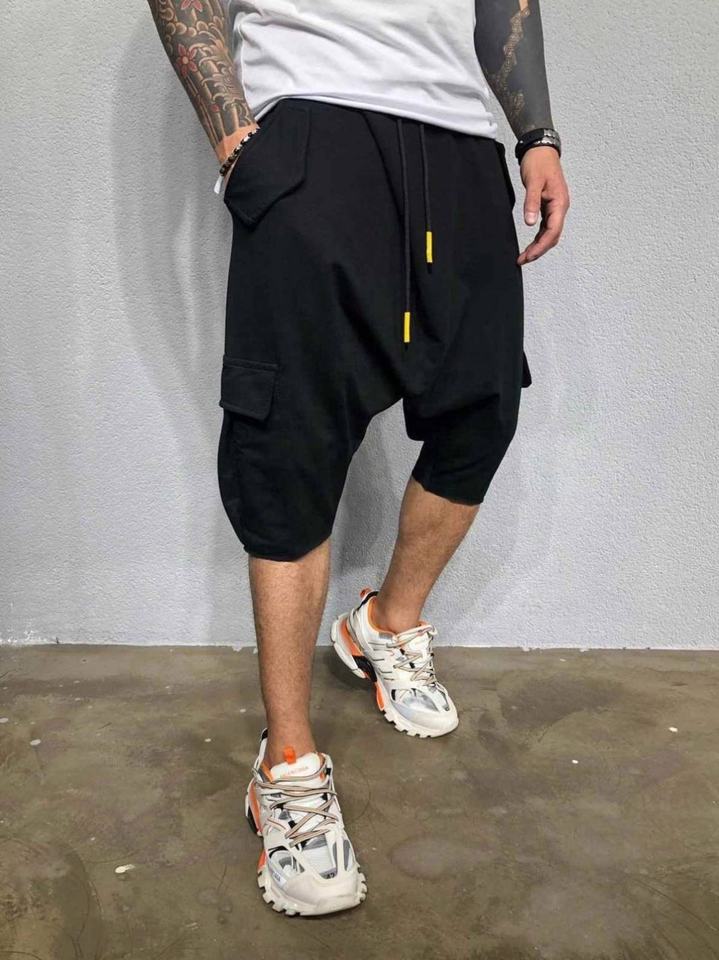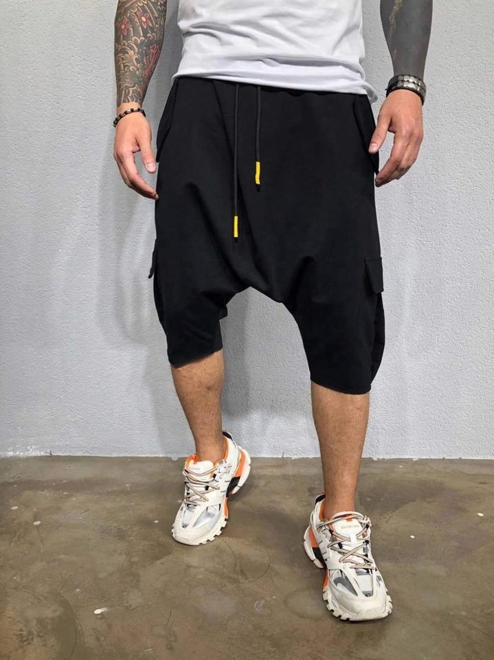 Product Name:Casual Hip Hop Streetwear Baggy Pants Summer Cropped Plain Red Harem
