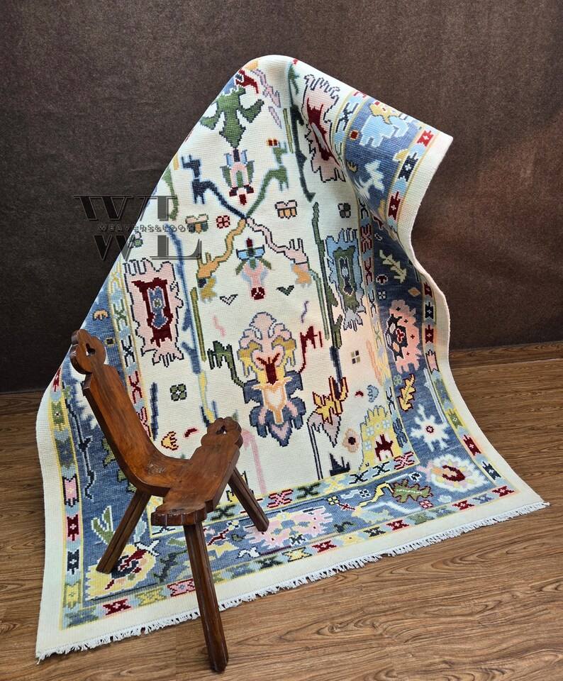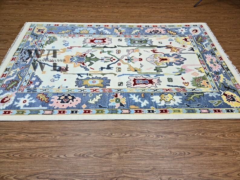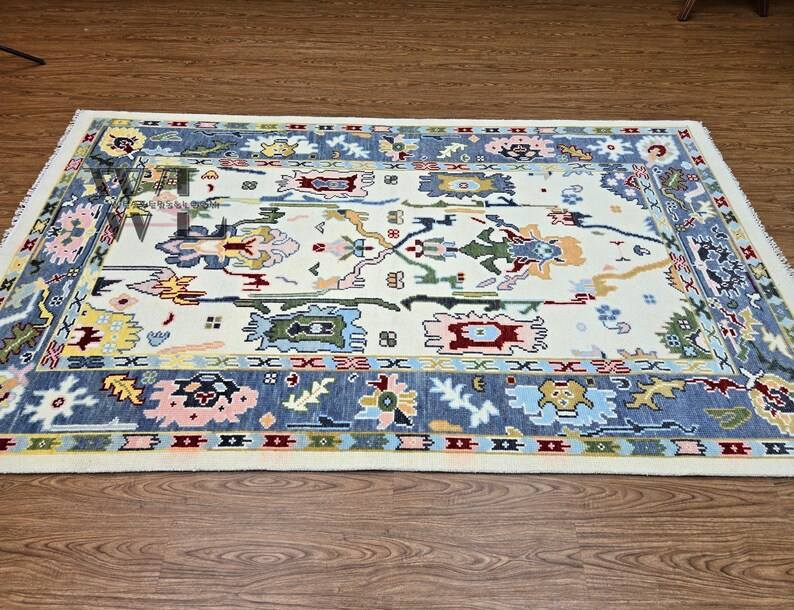 Ivory Pastel Hand Knotted Rug Modern Oushak Wool Area Rug for Bedroom Living room dining area Pastel Oushak Rug