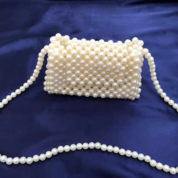 Ivory Pearl Beaded Plastic Hobo Bag | Handmade Modern Storage Bag Large Capacity | Durable Portable Wardrobe-Friendly Handbag