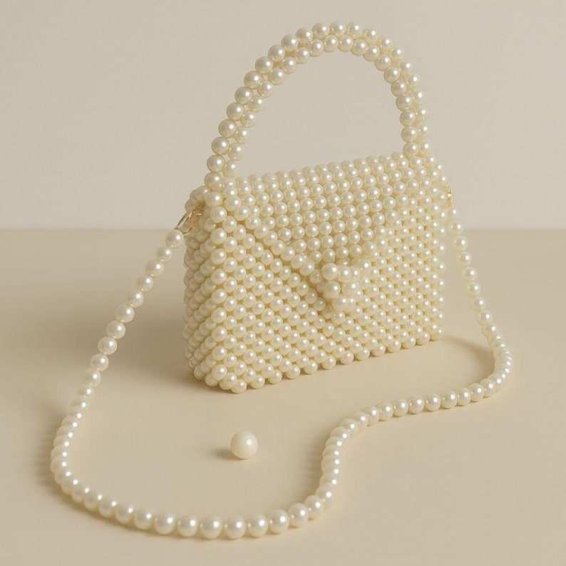 Ivory Pearl Beaded Plastic Hobo Bag Handmade Modern Statement Purse | Elegant Bead Shoulder Bag | Large Wardrobe Storage Handbag