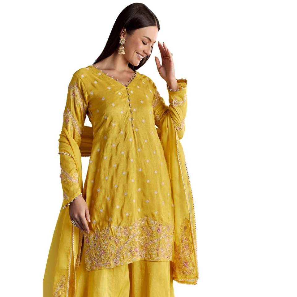 Ivory Silk Kurta Palazzo Suit With Applique Organza Dupatta Wholesale Women Ethnic Apparel OEM Clothing Factory Bulk Supplier