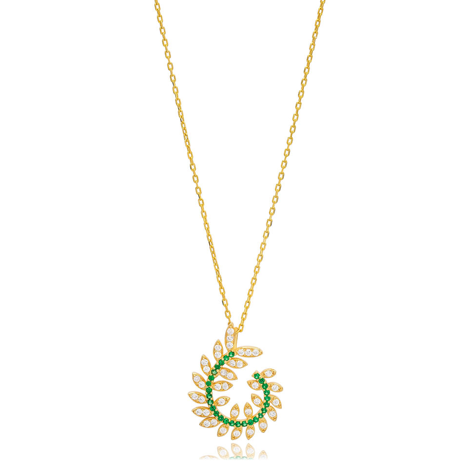 Ivy Leaf Design Emerald with Zircon Stone Charm Pendant Turkish Handmade Wholesale 925 Sterling Silver Jewelry