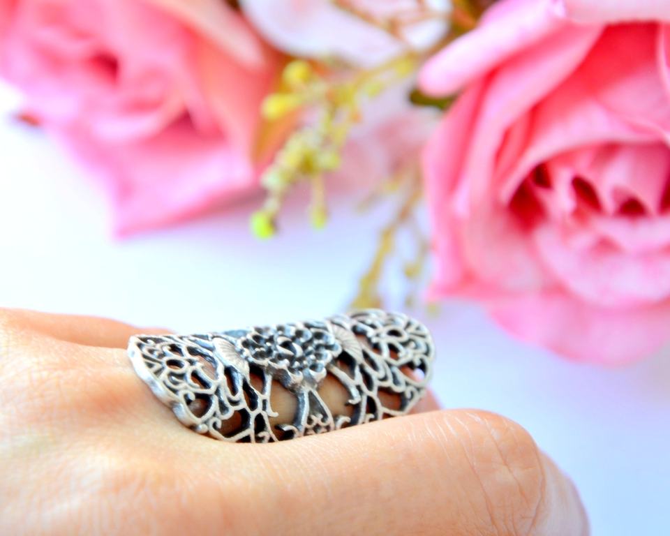 Ivy Wrap joint Midi Leaf Oliver Tree Little Finger oxidized Adjustable Flower wrap brass Gift to Her Wide corsage Jewelry patte