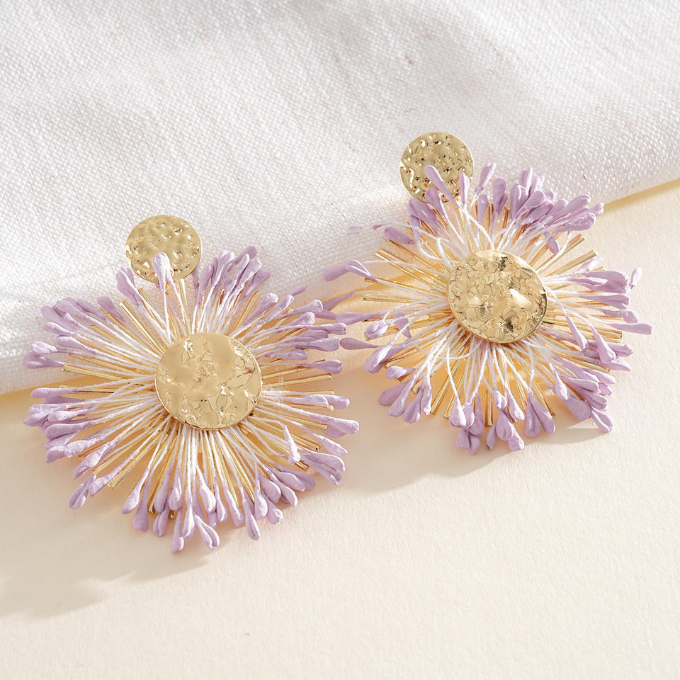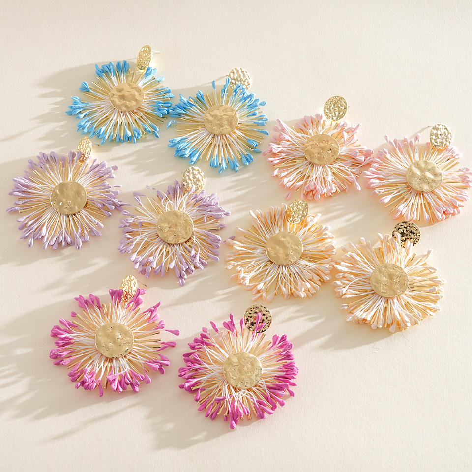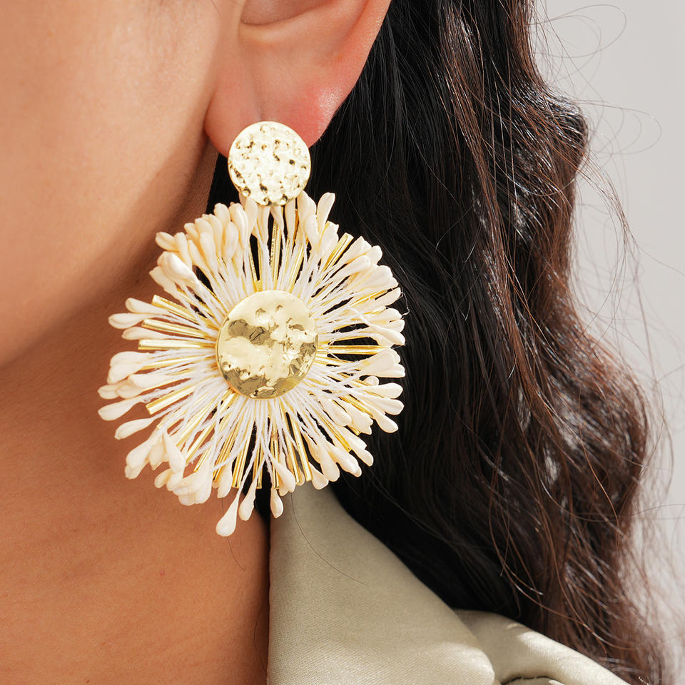 Vintage Party Raffia Tassel Ruffled Earrings Exaggerated Fashion Drop Earrings Women Jewelry