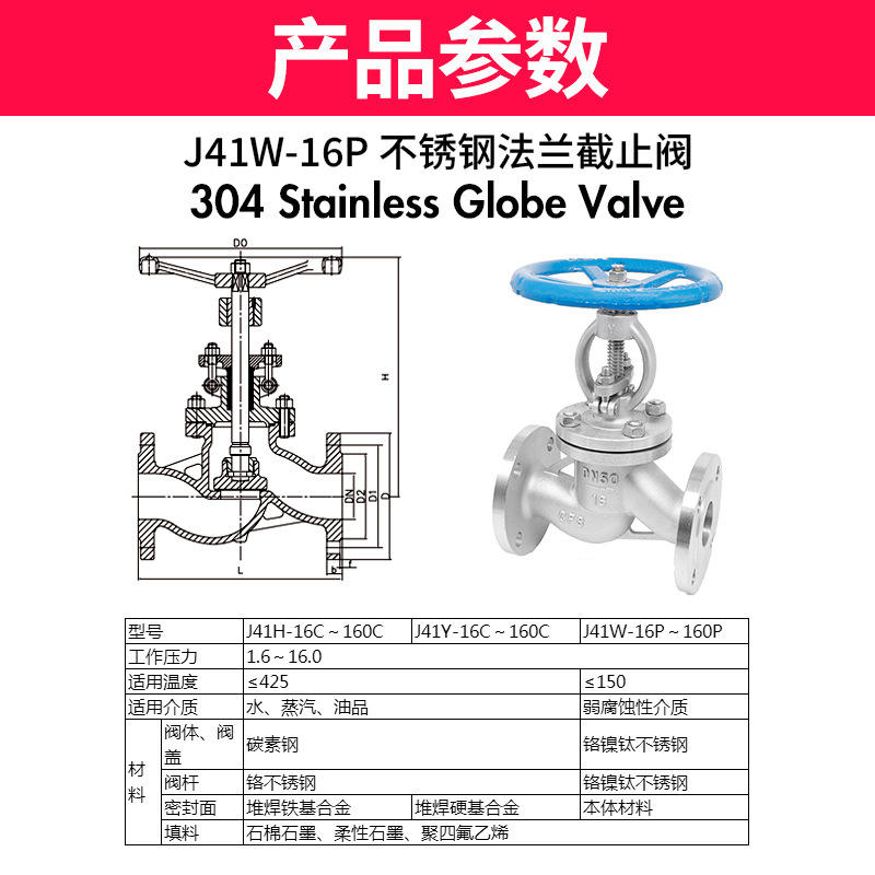 J41W-16P High Temperature Flange Gate Valve 304 Stainless Steel for Steam Nitric Acid DN25 32 40 50 65 Manual Pneumatic Options