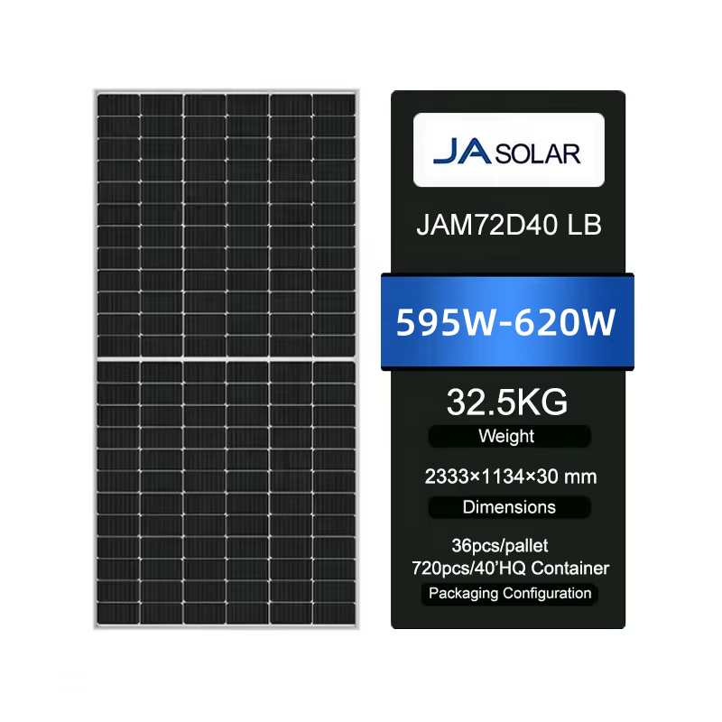 JA Solar JAM72D40LB Series Double Glass 595W 600W 605W 610W 615W 620W Bifacial Solar Panels with Bulk Price
