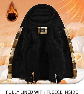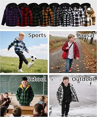 JACKETOWN Boys Fleece Jacket Kids Plaid Flannel Shacket Shirts Sherpa Hoodie Zip Up Sweatshirt Winter Coat 6-15 Years
