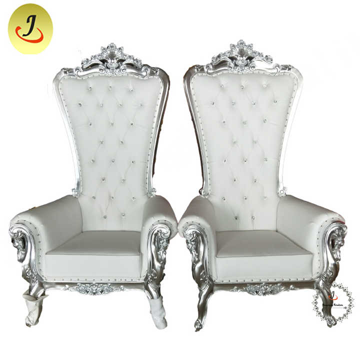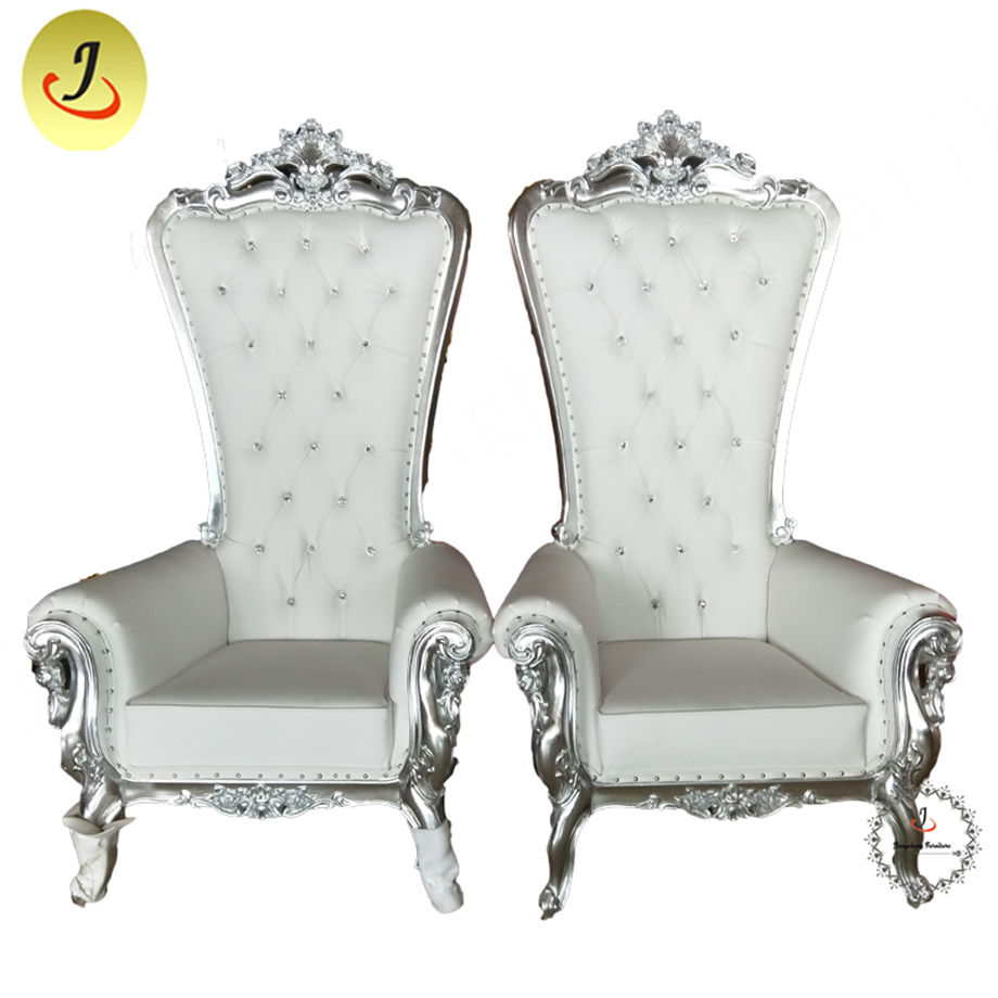 JC-K03 Wholesale Price New Modern Style High Back Solid Wood Gold Silver Color Leisure Wedding King Throne Chair Living Room