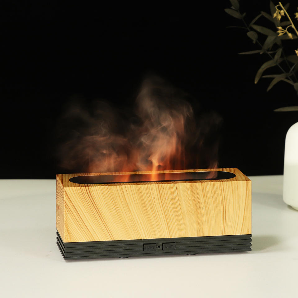 JCSY Aroma Humidifier 0.5L USB Flame Light Home Office Diffuser White Gray Wood Grain