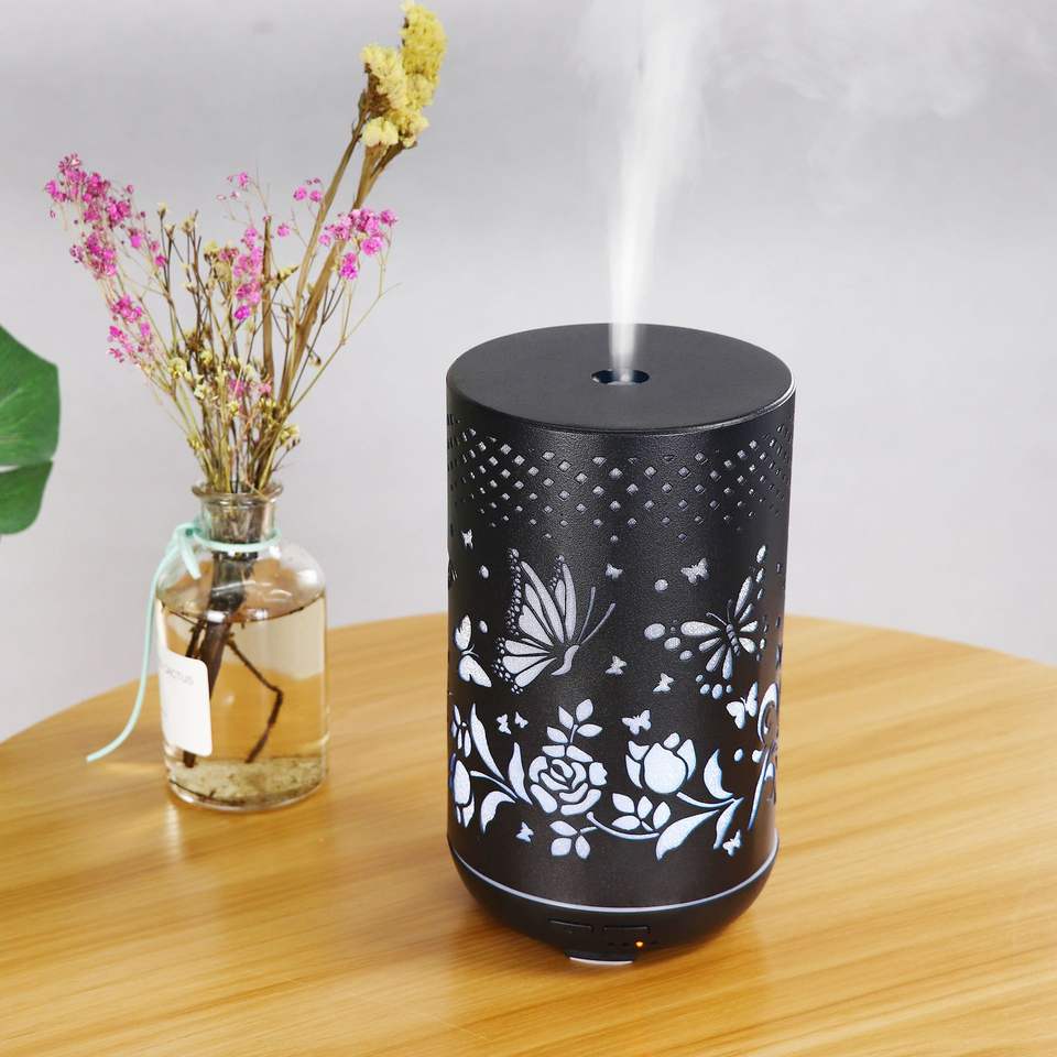 JCTY Carved Butterfly Aroma Diffuser 300Ml Black Electric Humidifier For Home Desktop Use