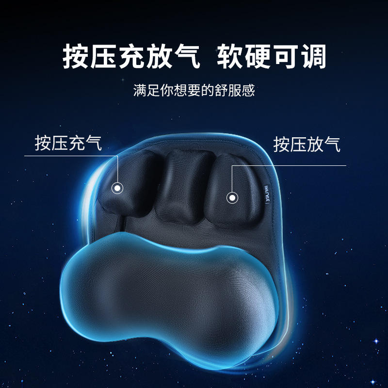 JFT Inflatable Car Headrest Neck Pillow Adjustable Air Support Black TPU Four Seasons Use