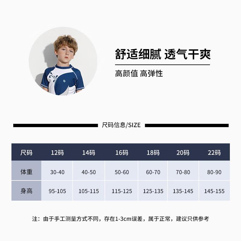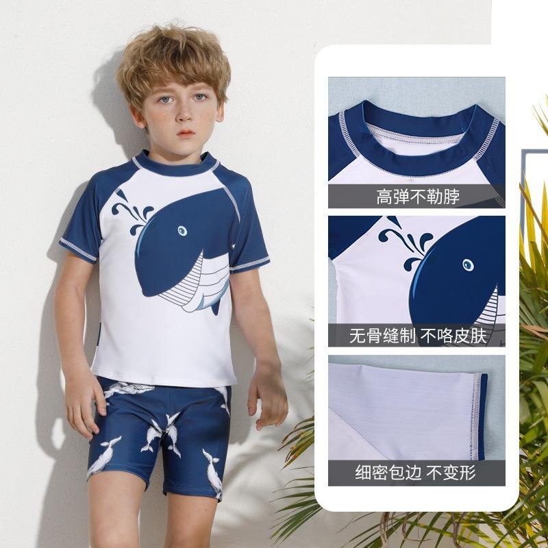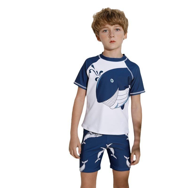 JH22206 Boys Swimwear Set Quick Dry Whale Print Swim Suit For Children Age 7-12 Blue White Design