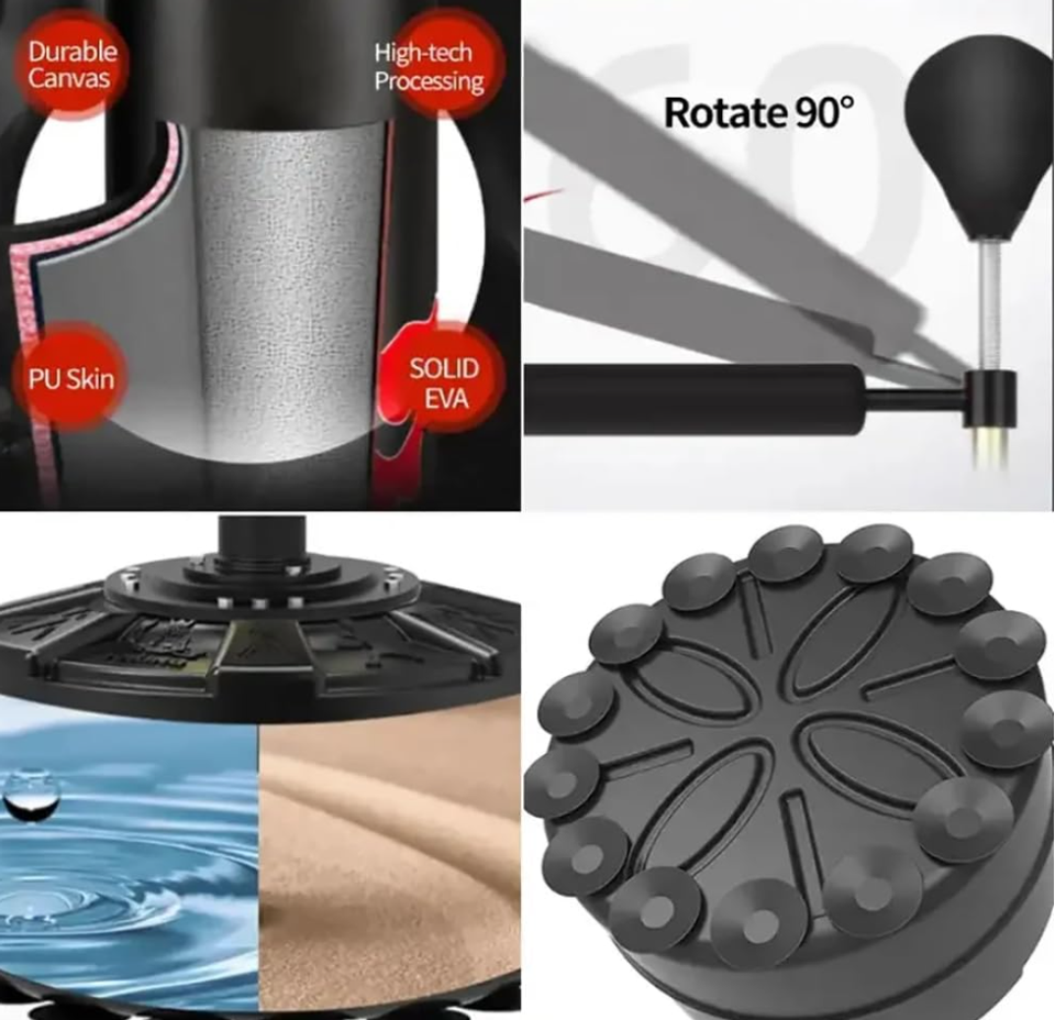 JIKE Adjustable Height Free Standing Pedestal Boxing Punching Bag with Spinning Bar Solid PU Material Water Sand Filling