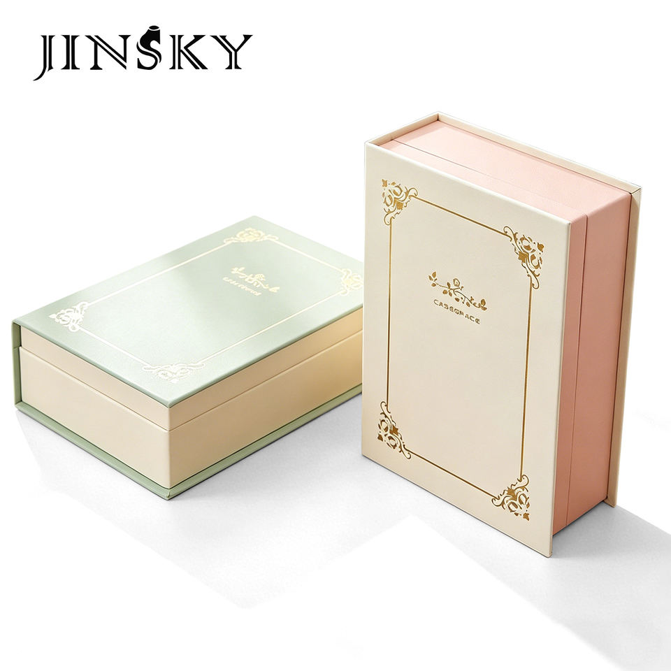 JINSKY Notebook Style Color Block Jewelry Box Flip Lid Storage Organizer For Earrings Rings And Small Trinkets