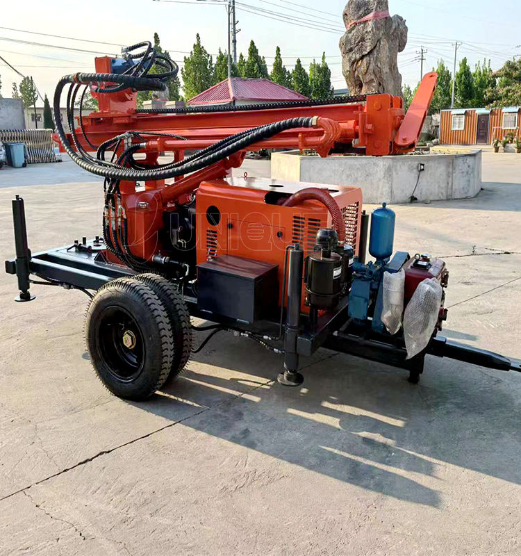 JJEM Portable Trailer Wheel 120m/150m Water Well Drilling Machine with Gear Pump Engine Bearing Core Components