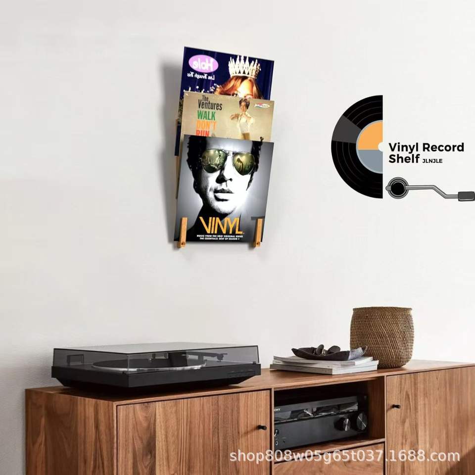 JLNJLE Wooden Wall Mounted Record Shelf Rectangle 2 Tier Multipurpose Book Display Rack For Vinyl Records And Books