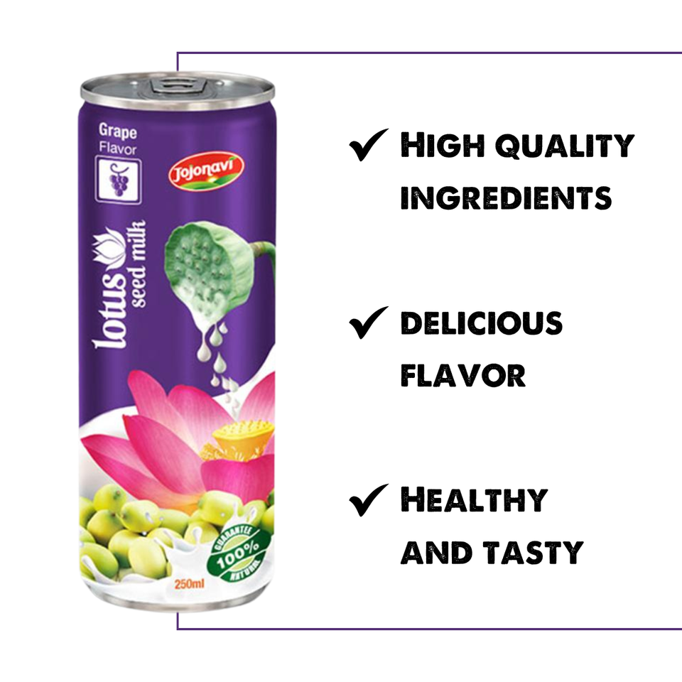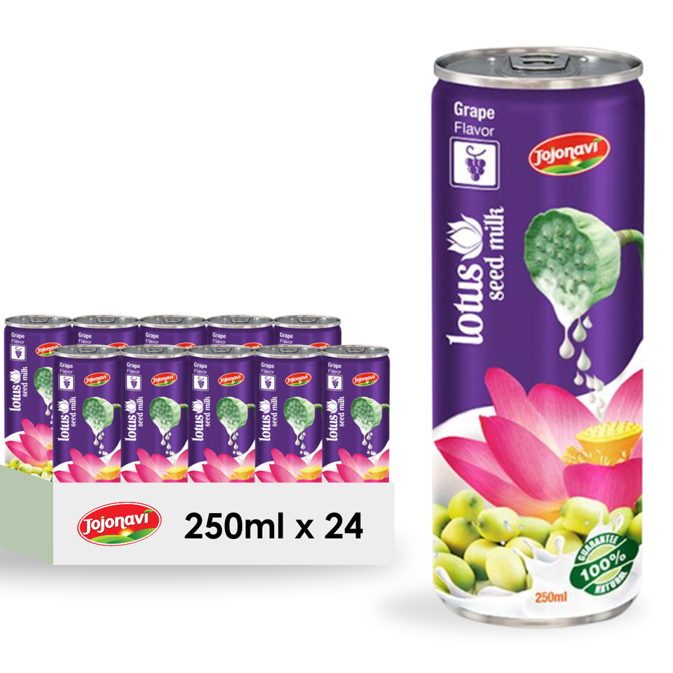 JOJONAVI 250ml Lotus Seed Milk Grape ISO HALAL KOSHER OEM ODM Private Label Filtered Box Bottle Manufacturer Wholesale Supplier