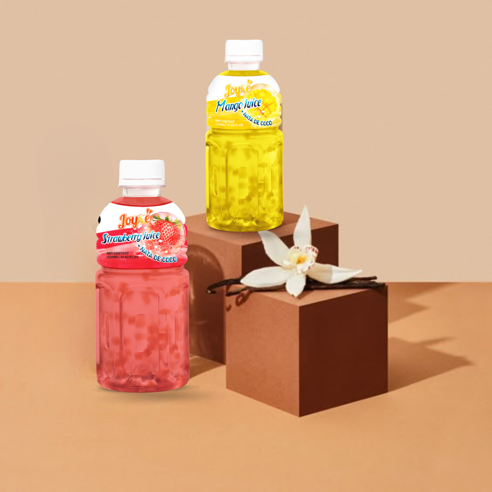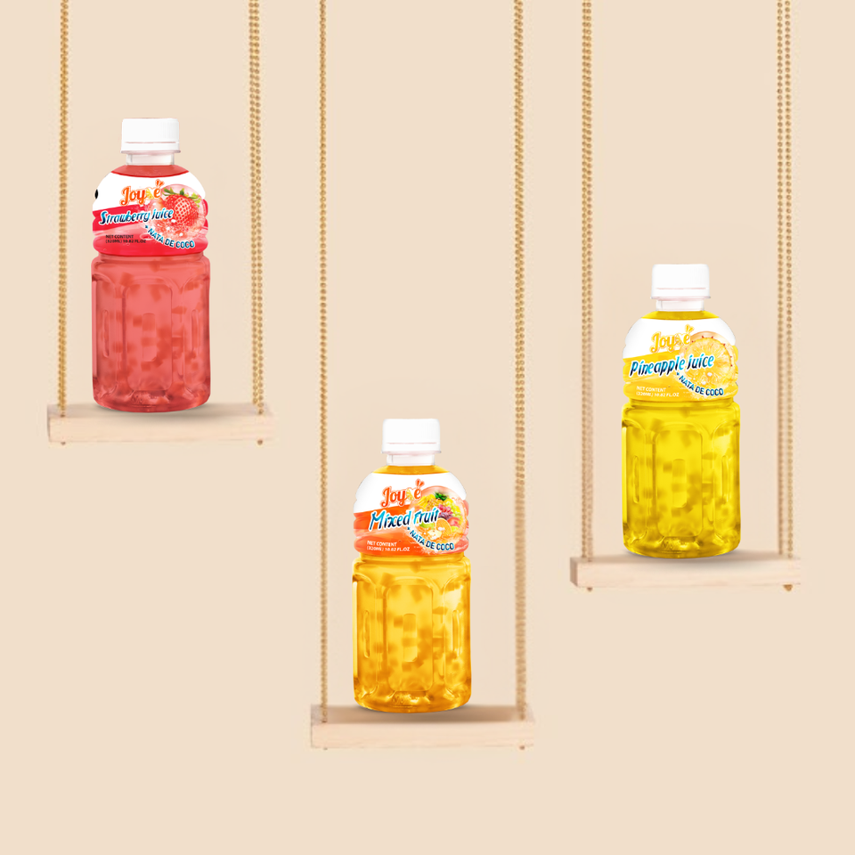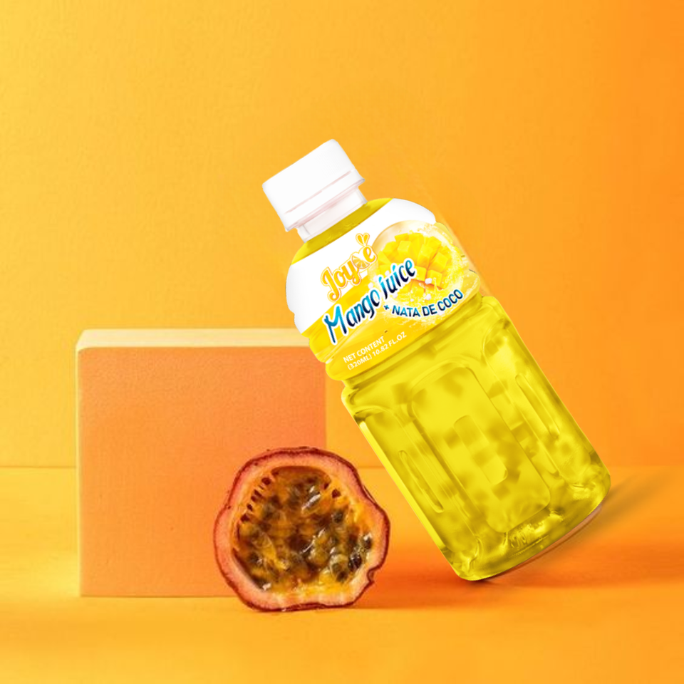 JOYCE Wholesale Fruit Juice with Nata De Coco 320ml Bottle Coconut Jelly Best Price OEM Manufacture Vietna Mogu Mogu Soft Drinks