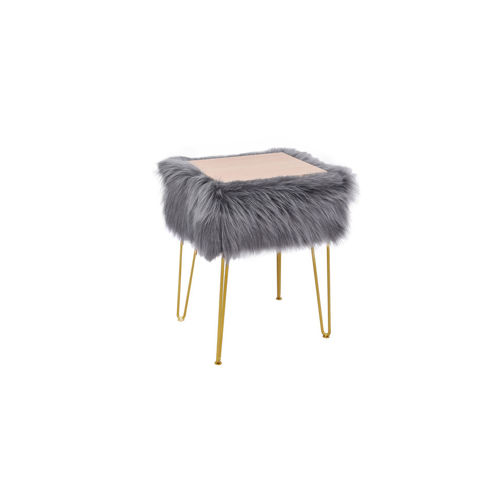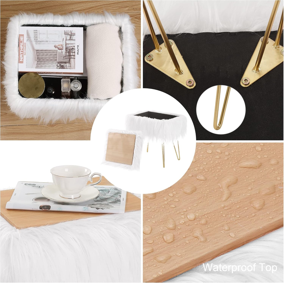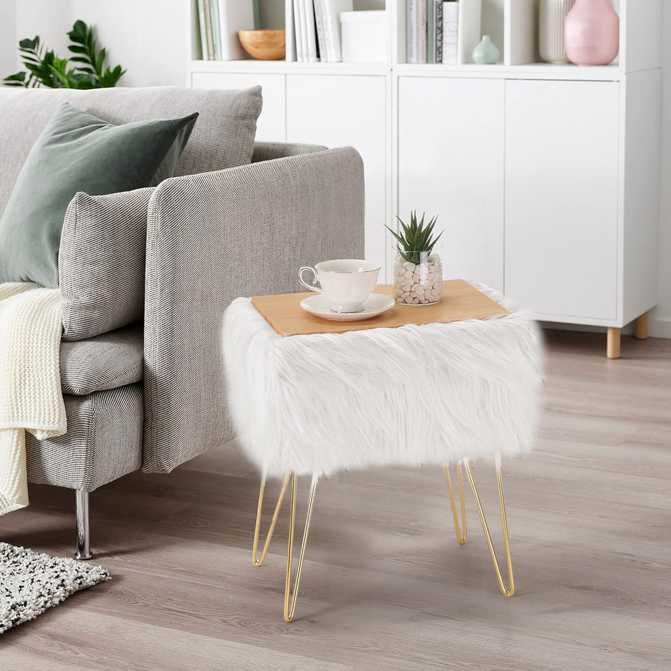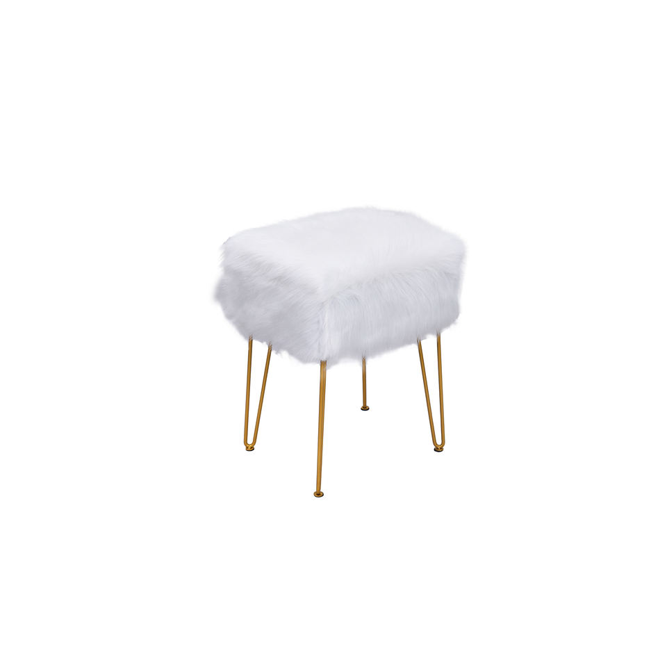 JS Customized Faux Fur Ottoman Footstool Small Bedroom Pouffe with Gold Metal Legs Accent Stools & Ottomans