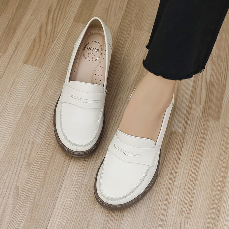 [JSHOE] Handmade Genuine Lambskin Womens High End Pumps 6cm Block Heel Comfort Loafers Korean Design Dress Shoes