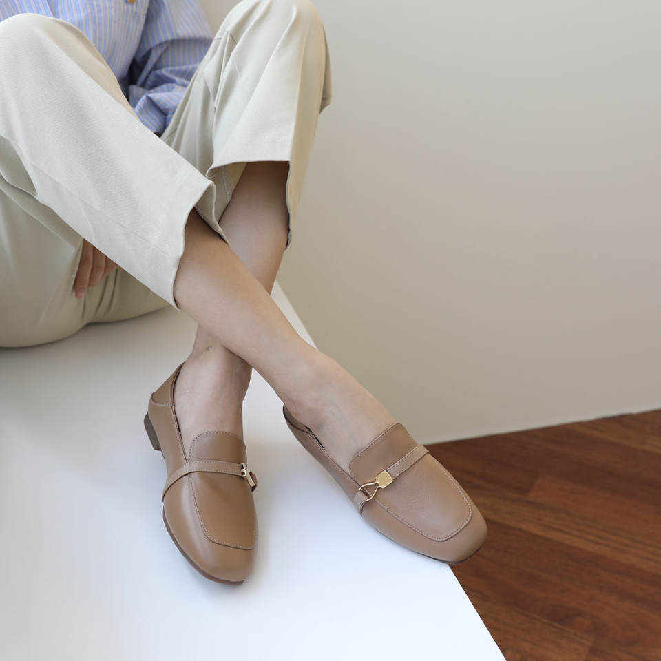 [JSHOE] Mix & match ready Joanne Lightweight Square-Toe Loafers in Natural Cowhide Leather Casual Shoes Women