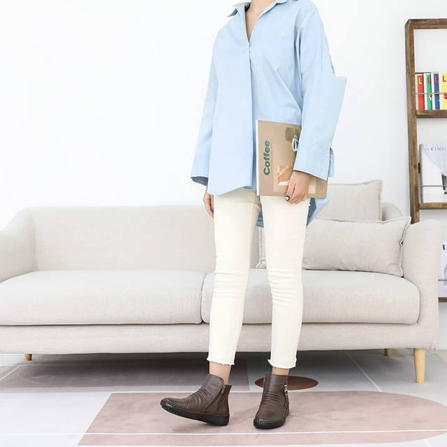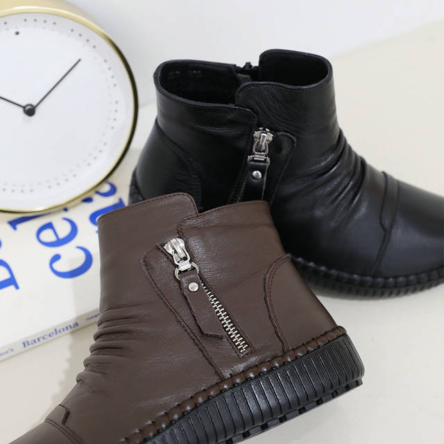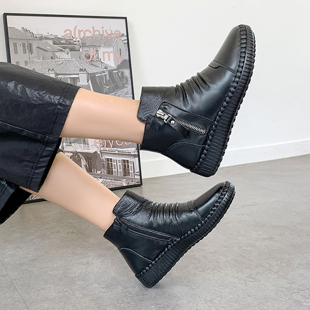 JSHOE Rococo Korean Fashion Ankle Boots for Women Genuine Cowhide Zip Closure Soft Sole Casual Booties Warm Winter High Top