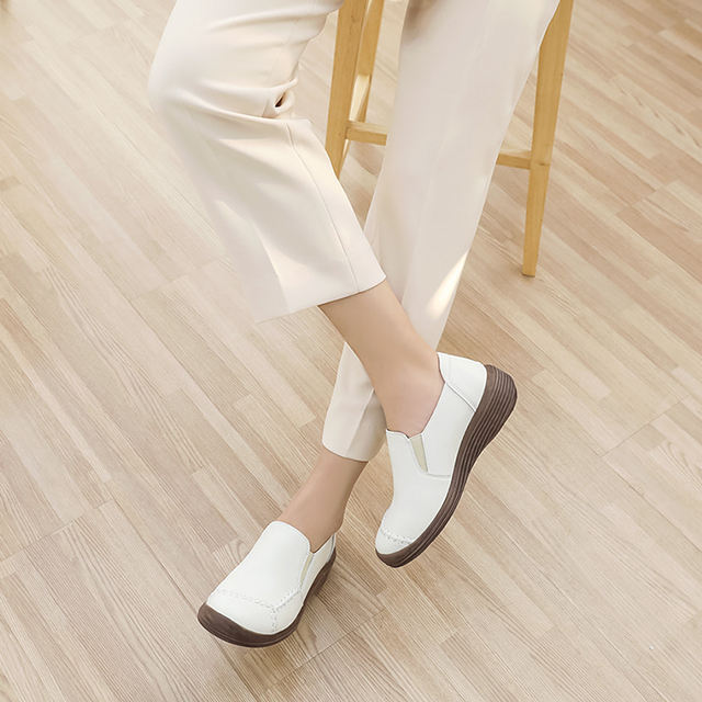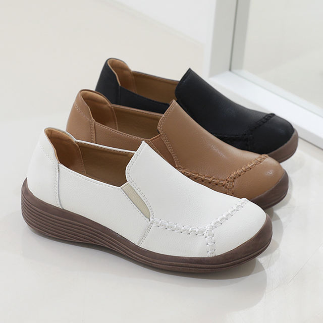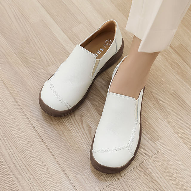 [JSHOE] Women Action Cow Leather Stitch Detail Slip-on Shoes Comfortable Daily Walking Flats