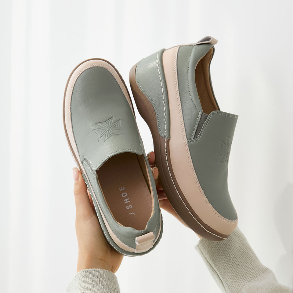 [JSHOE] Women Lightweight Platform Slip-On Sneakers Natural Cowhide Comfort Walking Shoes with Embossed Star Detail