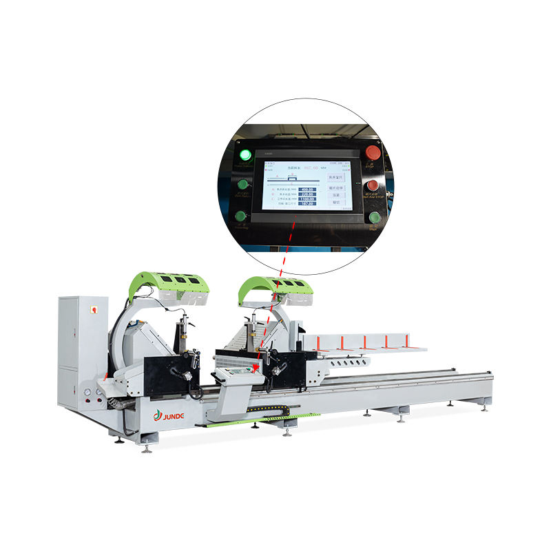 JUNDE Industrial Aluminum Cutting Machine Double Head Saw 3000W Motorized Movement Pneumatic Locking for Window and Door Making