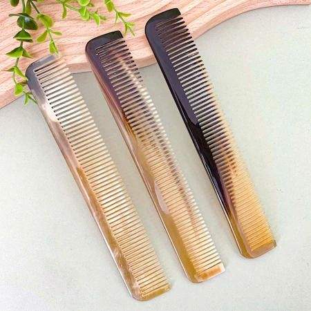 JUNK NATURAL CUSTOMIZED HANDMADE HORN COMB with Fine and Wide Teeth Handmade Buffalo Horn Comb for Hair Styling