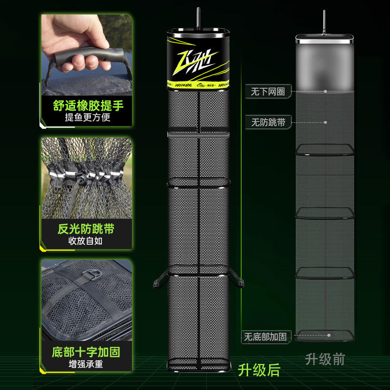 JUQIWANG Portable Fish Basket Black Quick-Drying Anti-Snag Mesh Net Bag For Wild Fishing Multi-Purpose Storage
