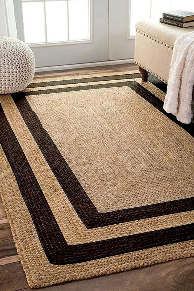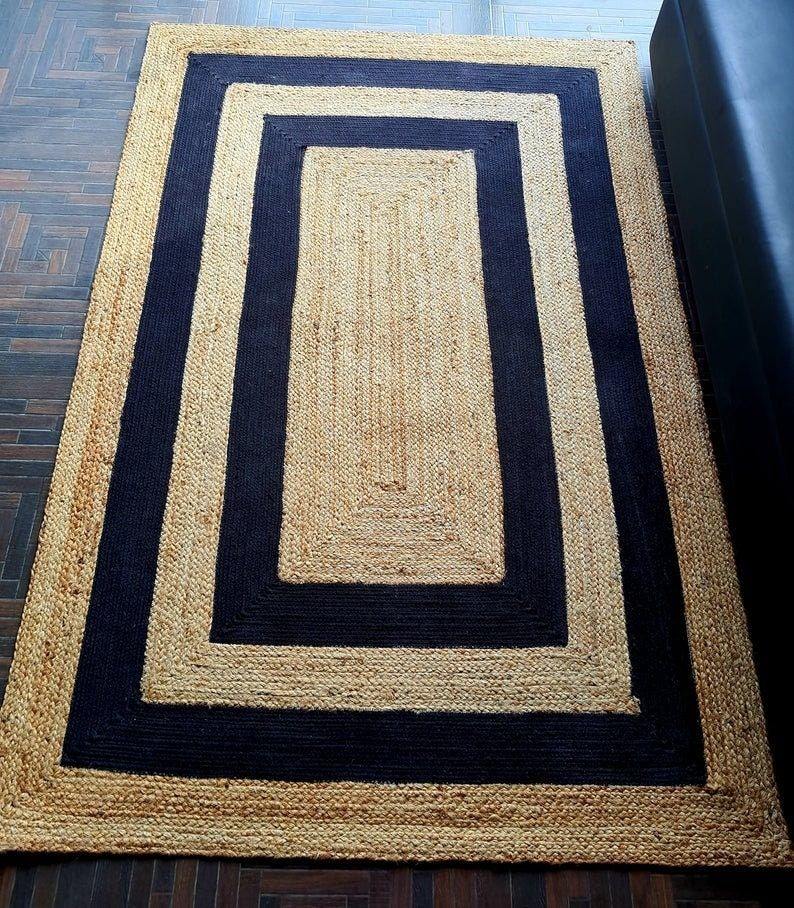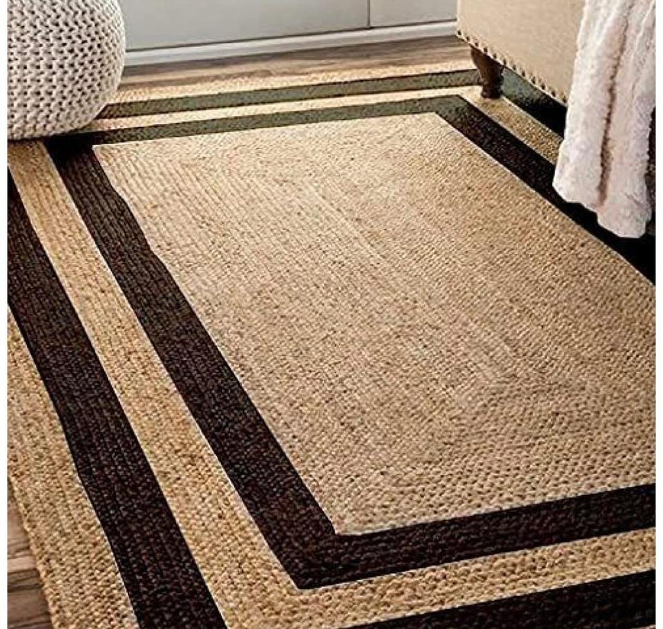 JUTE BLACK COTTON BRAIDED MACHINE MADE RUGS CARPETS Eco-friendly Hemp Pet Friendly Sustainable Plant Fiber Chunky Woven Texture