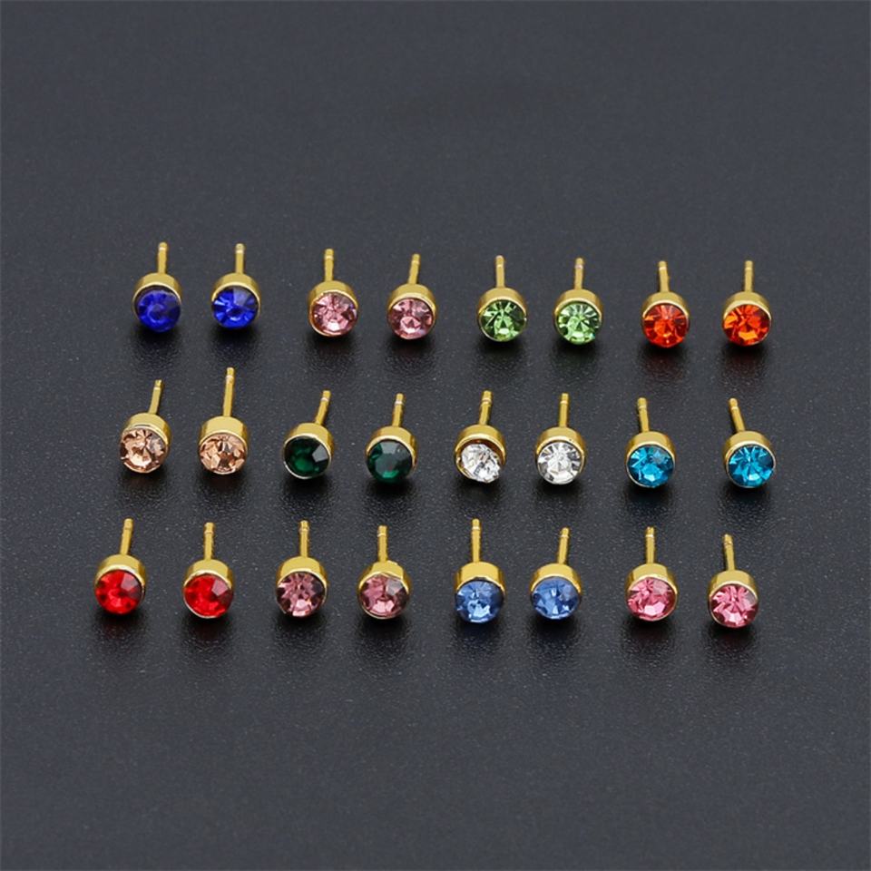 JXX Fashion 24K Gold Plated Copper Mini Round Stud Earrings with Cubic Zirconia Wedding Jewelry for Girls