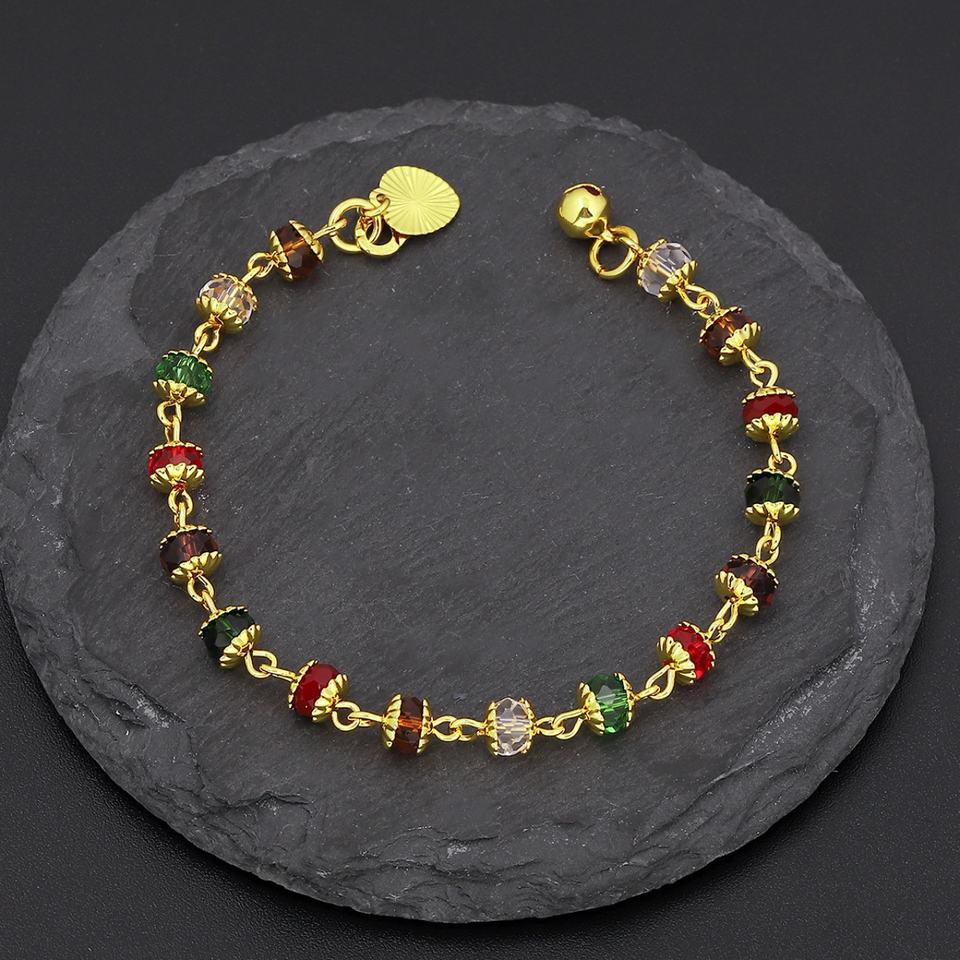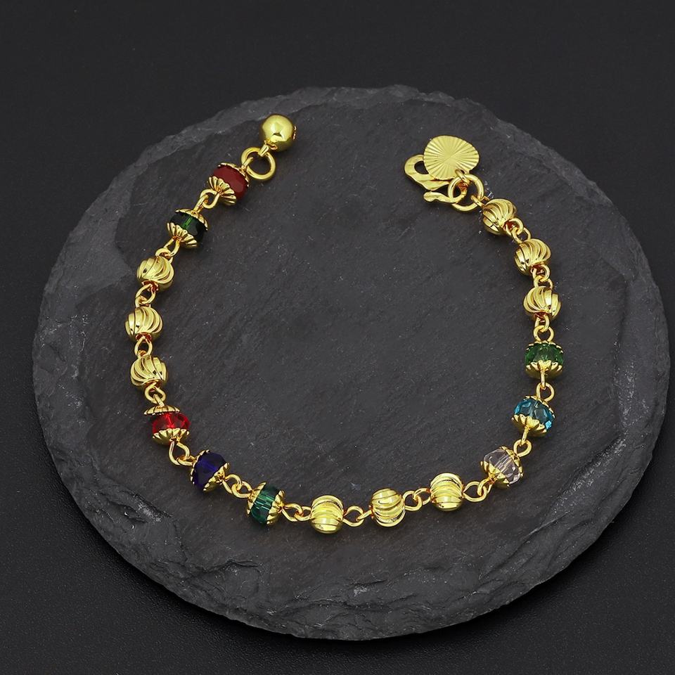 JXX Fashion's Trendy 24K Gold Plated Bead Zircon Bracelet for Women Brass Tennis Charm Bracelet