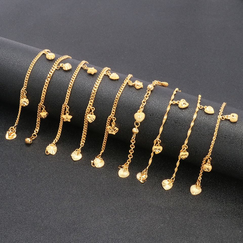 JXX JSL-Z7/9-79 New Hot Sale Small Heart Pendant Brass Bracelet 24k Gold Plated Jewelry for Women